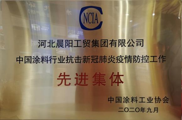 河北晨陽(yáng)工(gong)貿集(ji)團(tuán)榮獲“中(zhong)國(guo)塗料行業抗擊新(xin)冠肺炎疫情防控工(gong)作(zuò)先(xian)進(jin)集(ji)體(ti)”